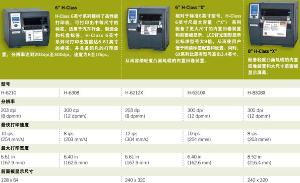 范围:H-Class 系列产品包括 203、300、400 和 600 DPI 分辨率,满足多种应用。