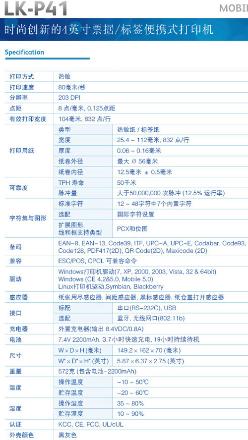 当前位置:产品与服务>>条码打印机(Barcode Printer)>>Sewoo>>LK-P41